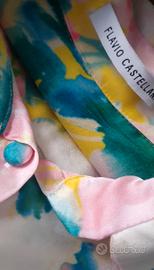 FANTASTICA camicia firmata Flavio Castellani, 92% seta, 8% elastane. Indossata solo per servizio fotografico, quindi qualità pari al nuovo. Colori meravigliosi, la camicia sembra quasi dipinta a mano. Firma garanzia di qualità eleganza e classe. Tg.38. Vestibilità piacevolissima. Nel mio armadio altri abiti e gioielli bellissimi. Un armadio molto grande da scorrere per scoprire anche vere meraviglie.