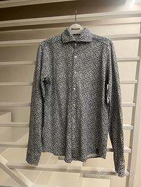 Camicia elegante Drumohr a maniche lunghe con raffinata microstampa floreale blu e bianca. Realizzata al 100% in cotone con una trama morbida e leggermente strutturata, leggera al tatto ma di ottima consistenza. Un perfetto equilibrio tra artigianalità italiana e stile senza tempo.