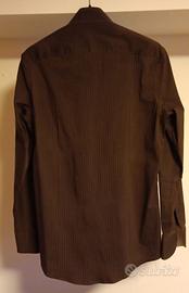 Camicia gessata firmata "DANIELE ALESSANDRINI" taglia L, marrone e bianco.