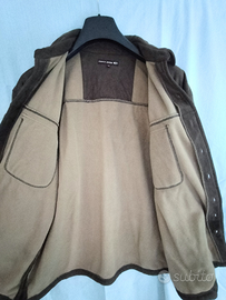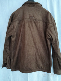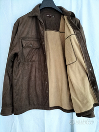 Camicia giacca da uomo in camoscio sintetico di colore marrone taglia large ma corrisponde a una XL con interno in pile color nocciola