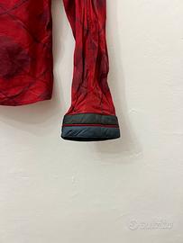 Design rosso intenso con motivo geometrico e dettagli neri su colletto e polsini 🖤