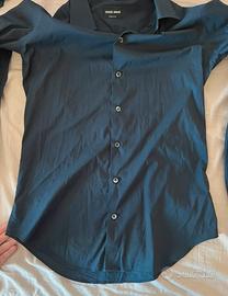 Camicia originale Giorgio Armani, Made in Italy, colore blu scuro elegante.
