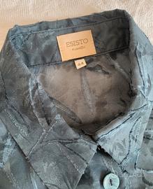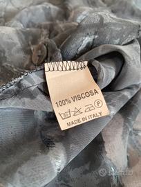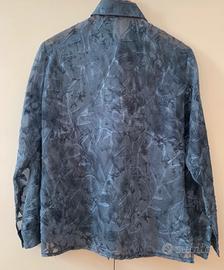 Camicia grigia con motivo floreale, taglia 44, marca Conbipel. Il tessuto non è elasticizzato ed e' piuttosto trasparente. Ha un taglio dritto e due piccoli spacchi laterali. Nuova, mai stata usata, in ottime condizioni, ma senza cartellino.