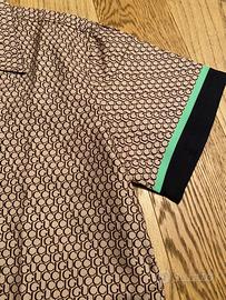 Camicia maniche corte inSeta beige e marrone con stampa all over