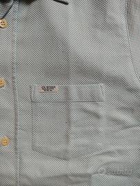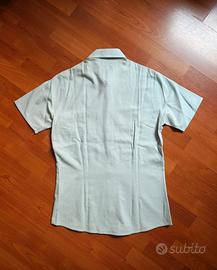 Elegante camicia Guess, zigrinata, azzurra e bianca, con taschino su lato, ottime condizioni, ideale per serate estive o primaverili, al mare o in città.