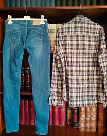 Set composto da camicia a quadri, taglia L, marca Guess e jeans blu marca Talco, taglia 46 (L) , vedere le foto con le misure.