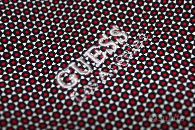 Vendo elegante camicia GUESS da uomo, modello slim fit. Colore bordeaux con microfantasia geometrica, bottoni neri e polsini doppi. Tessuto leggero e confortevole, perfetta per un look casual o elegante.