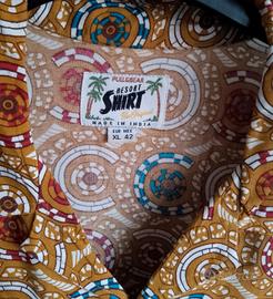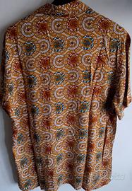 Camicia a maniche corte con una stampa vivace e colorata. - Fantasia con cerchi concentrici rossi, blu e bianchi su fondo giallo. - Tessuto leggero, ideale per l'estate. - Colletto classico e chiusura con bottoni.