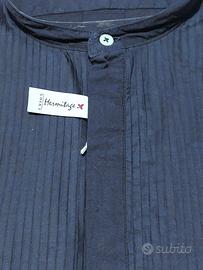 Descrizione: camicia in cotone con collo alla coreana, plissettatura sul davanti, bottoni a scomparsa.