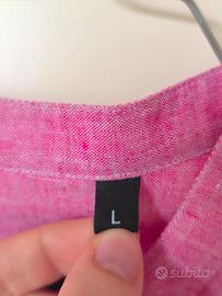 Camicia Gianni Lupo rosa in lino e cotone a maniche lunghe in ottime condizioni. Misure= lunghezza: 73 cm; spalle: 47 cm.