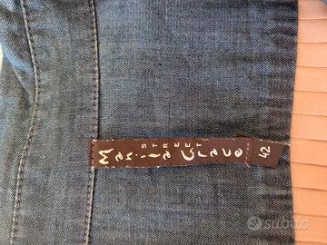 camicia in jeans blu scuro di Manila Grace retro plisstettato colore avorio taglia 42. insossata poche volte