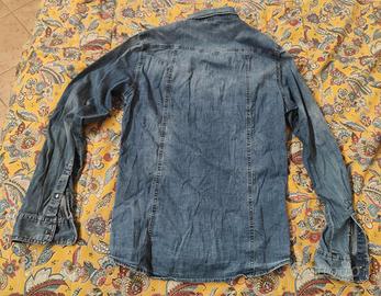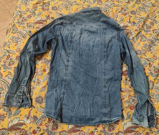 Camicia da uomo in denim azzurro marca Bruno Leoni, taglia L, modello casual con due taschini frontali e bottoni metallici. Tessuto jeans leggero e resistente, ideale per uso quotidiano o look urban. Capo in ottime condizioni,. le pieghe presenti nelle foto sono dovute alla conservazione.