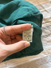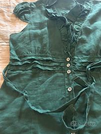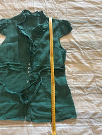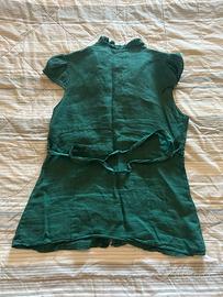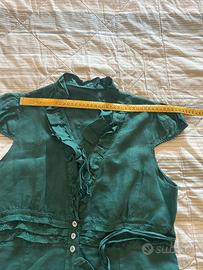 • Camicia a maniche corte di colore verde • Ha una laccio per segnare il punto vita che può essere legato avanti o dietro. Ha i bottoni sul davanti. Scollo a V e colletto • Taglia corrisponde ad una M, le misure sono visibili anche in foto • 100% lino • Made in Italy • In ottime condizioni