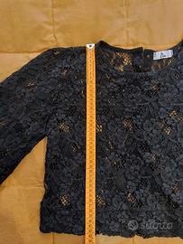 Vendo elegante camicia in pizzo nero, con maniche a pipistrello e chiusura con piccoli bottoni dietro. Come nuova taglia S