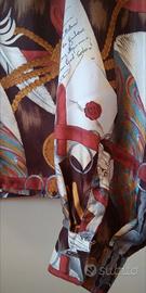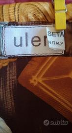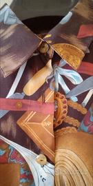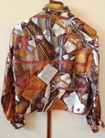 Camicia sartoriale 100% seta, motivo a fantasia, spalle cm. 44, lunghezza cm. 50, taglia 42 M, made in Italy, sartoria Uleri Reggio Emilia. Le foto non rendono bene la vivacità dei colori.