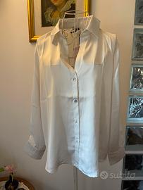Stupenda camicia lineare e semplice ma molto femminile, in un lucido raso che cade molto bene indosso e con bottoni in madreperla.