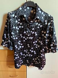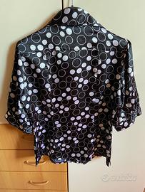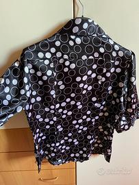 Camicetta nera in raso a maniche corte con pois bianchi Apertura davanti con bottoni Leggera e comodissima
