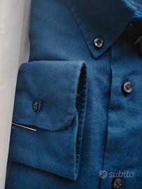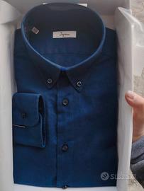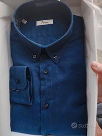 Vendo elegante camicia da uomo marca Ingram,colore scuro,nuova. È un blu denim. Blu scuro. 55%lino e 45% cotone,ideale per primavera/ estate perché fresca e traspirante. -colletto button down,stile classico ma versatile,perfetta sia per outfit che eleganti e casual -Tg 41(circa M/L) - vestibilità regolare Misure: Spalle 48,5cm Torace 58 cm Fianchi 56 cm Lunghezza 78cm Prezzo leggermente trattabile. Oltre al like, SCRIVIMI!
