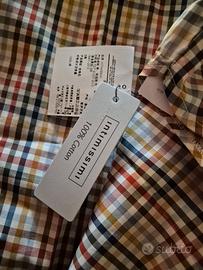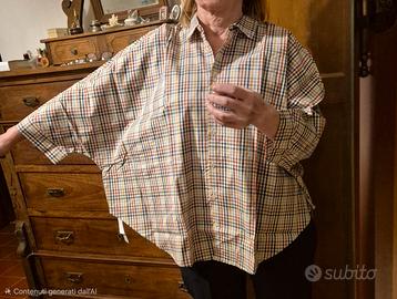 camicia a quadretti marrone e beige con manica a kimono. nuova con cartellino. taglia s/m