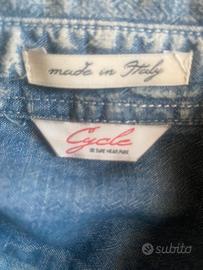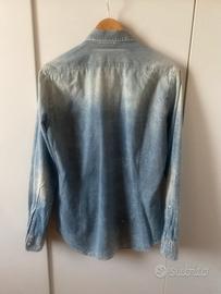 Camicia jeans con parte dei bottoni nasscosti e bordo in fondo arrotondato, poco usata