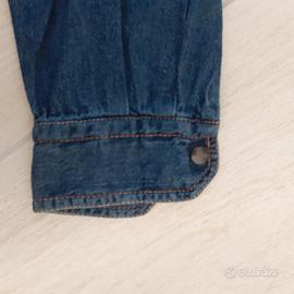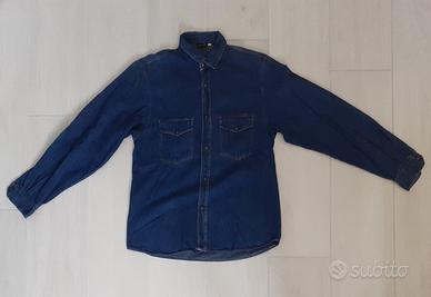 Camicia Maniche lunghe di Jeans blu scuro Vintage, dotata di due comode tasche sulla parte anteriore e di bottoni al livello dei polsi sulle maniche