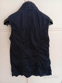 Buongiorno, vendo camicia smanicata donna Versace jeans Couture, in denim blu scuro, caratterizzata dai classici bottoni con testa di Medusa in metallo. Un capo versatile e alla moda, usata ma in ottime condizioni, stile anni 90, con taglio leggermente sciancrato e colletto a punta, taglia S. Grazie per l'attenzione.