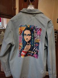 Camicia jeans "Mona Lisa" puro cotone 100% bottoni in ottone riproduzione sulla schiena su tela stampata cucita su camicia. Usata poco per cambio taglia, ottime condizioni.