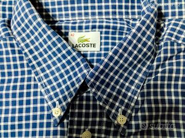 Camicia da uomo classica Lacoste a quadretti blu e bianchi con maniche corte e bottoni. Una tasca sul petto con logo La coste. 100% cotone. Ottime condizioni, nessun difetto, non è sbiadita, e parliamo di un capo originale. #camicialacoste #taglia M #camiciauomo #camiciauomomanicacorta #ottimecondizioni #blubianca #modellouomo #camiciacontaschino #comenuova #elegante #spedizioneveloceeaccurata