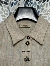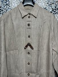Camicia uomo Landhaus C&A in stile tirolese. Tessuto naturale effetto lino, bottoni decorativi e dettagli ricamati. Vestibilità comoda, ideale per outfit casual, tradizionali o vintage. Ottime condizioni.