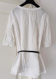 Camicia larga cotone con cintura, colore bianco, maniche al gomito, marca Pimkie, si può usare come copricostume, taglia media