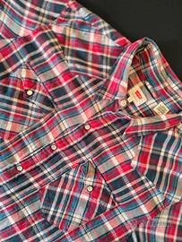 Camicia Levis da uomo in morbida flanella a quadri, pattern rosso, blu, azzurro e nero.