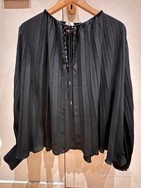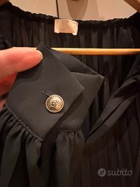 manica lunga con bottoni e piccoli borchie piatte in metallo che delimitano l’apertura davanti e laccetti