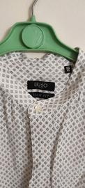Camicia da uomo Liu Jo con una fantasia geometrica. - Colore bianco e grigio. - Collo alla coreana. - in cotone leggere ed elegante