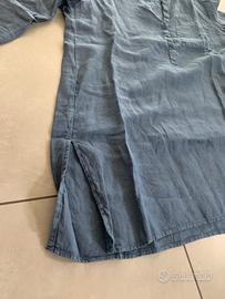 Vendesi camicia lunga di lino colore carta da zucchero con laccetti alle maniche e spacchetti laterali