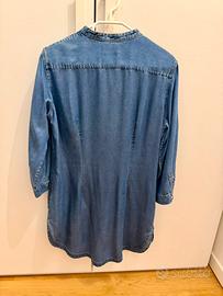 Camicia lunga, tipo vestito con maniche a tre quarti. Adatta a leggings Collo alla coreana, tasche. taglia 44 Marchio Camicetta Snob Mai indossata. Tessuto tipo jeans Clylyocell impalpabile