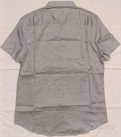 Vendo camicia a maniche corte originale di marca Armani Exchange di colore grigio con motivo geometrico nero, taglia M, tenuta in ottime condizioni, a 25 euro.