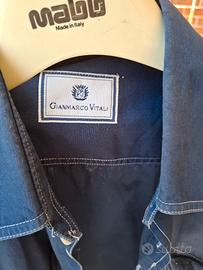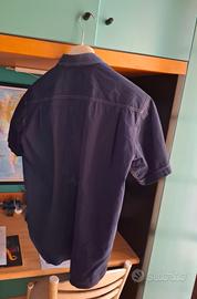 Camicia maniche corte, colore blu Jeans, taglia M, brand Gianmarco Vitali, cuciture bianche a vista e taschini