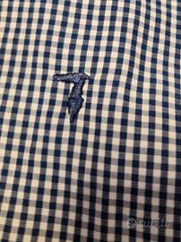 Camicia in cotone a maniche lunghe a quadretti bianca e blu con taschino originale Tru-Trussardi. Taglia collo 41