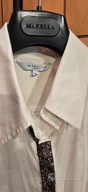 Camicia estiva Marella Sport in tela di cotone elasticizzato. Taglia 48 ma con un fit avvitato, infatti c'è anche dell'elastan. Molto particolare il polsino che resta aperto.