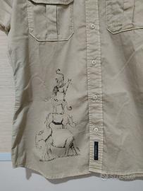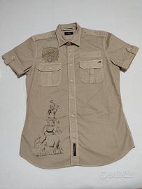 Camicia MASON’S Uomo Originale Taglia: LARGE Colore: KAKI (COLONIALE) Composizione: 97 % Cotone – 3 % Elastane Morbidissima Particolare a forma di stella realizzato con piccole borchie dorate Simbolo MASON’S sul taschino sinistro Disegno “Animaler” su un lato della camicia La camicia è pulita di lavanderia e necessita soltanto di una stiratura La camicia NON HA PUNTI SCOLORITI, le variazioni di tonalità di colore che si possono notare in qualche immagine dell’annuncio sono dovute soltanto alla luce di esposizione utilizzata nel fare le foto Il colore della camicia E’PERFETTO Di seguito elenco le misure (vedere foto 6) Consiglio di controllare bene le misure descritte sotto e di non guardare soltanto la taglia Misure: A: 76 cm. B: 53 cm. C: 47 cm. La camicia è NUOVA, con le etichette, viene proposta a 39 euro … certamente una buona occasione!!!
