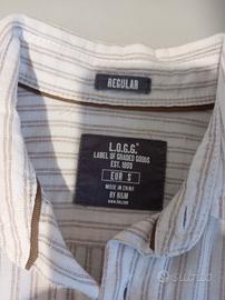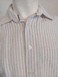 Camicia uomo H&M L.O.G.G. – taglia S (Regular fit) Maniche lunghe ed apertura parziale stile henley dal design casual elegante Produzione primi anni 2000 Colore: bianco panna con righe sottili verticali beige/marroncino Colletto classico Chiusura con mezza abbottonatura (stile henley) Taschino sul petto Vestibilità: regular Tessuto leggero e traspirante Composizione: 55% lino 45% cotone Ideale per primavera/estate grazie al mix. Ottime condizioni generali, nessun difetto strutturale Misure Spalle 44 cm Torace 54 cm Lunghezza manica 64 cm Lunghezza totale 80 cm