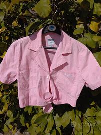 Camicia Moschino a quadretti bianchi e rosa. Taglia 40.