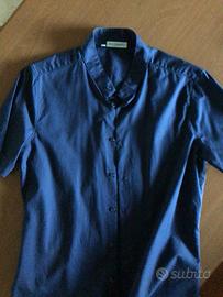 Camicia manica corta, blu, tessuto come in foto, colletto coreano. Taglia S. Usata 4 volte. Ottima vestibilità.