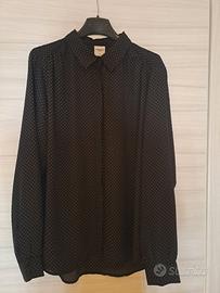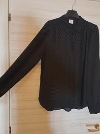 Vendo camicia nera a pois bianchi, con maniche lunghe e colletto. Elegante e comoda. Nuova, tenuta benissimo, indossata una sola volta. Pulita, senza difetti. Brand: Piazza Italia, acquistata in negozio. Taglia L. Per misure ed informazioni, contattami in chat ๐๐๐๐๐