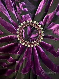 Camicia nera e viola con spilla, velluttata, ben tenuta