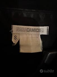 Camicia nera NARACAMICIE, taglia S, con fronte in cotone liscio elasticizzato e corpo lavorato con motivo geometrico.