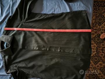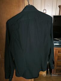 Camicia nera uomo slip fit (sciancrata sul retro). Taglia L (16-41). Indossata un paio di volte. Spalle 41, petto 52, lunghezza 66. Polsini con tre bottoni (vedi foto del dietro). Ottime condizioni.