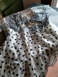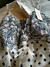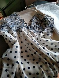 Camicia notte/ pagliaccetto IMEC,. In Valle, bianco/blu ,parte del seno in morbido pizzo lavorato.