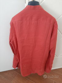 Camicia con collo alla coreana 100% LINO a marchio AND, taglia L per uomo. Color corallo/salmone.