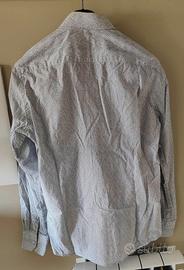 Camicia originale Cotton & Silk, colore bianco con micro fantasia a puntini blu, taglia XL. Tessuto in cotone leggero, vestibilità comoda. Capo elegante ma adatto anche ad uso quotidiano. Nessun difetto, solo pieghe dovute alla conservazione in armadio.